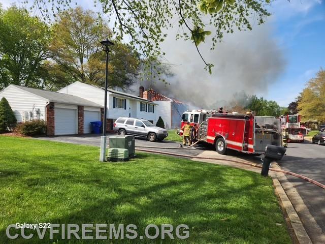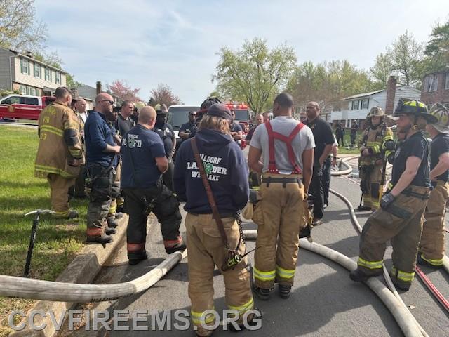 Just before 3:00 PM, the Charles County 911 Center received reports of a house on fire on Rosewood Drive in the Westlake area, which is served by Company 12. Units responded promptly, and Rescue Engine 12 arrived within minutes, confirming visible fire from the rear of the home. An attack line was deployed to the back of the structure.